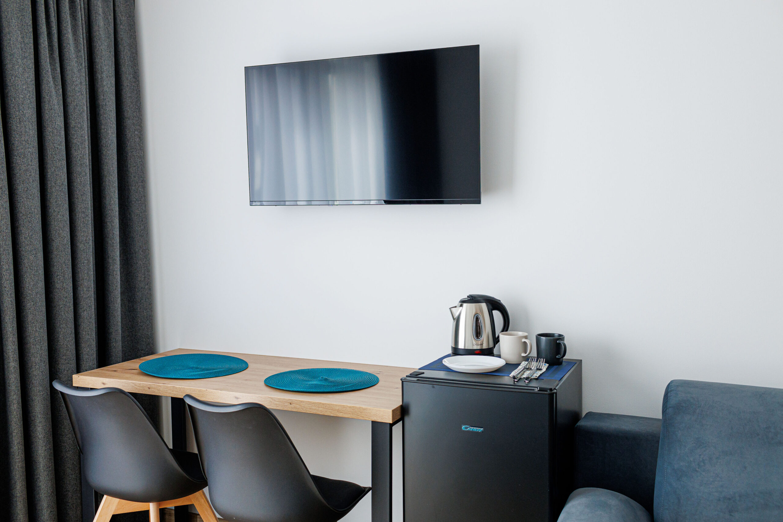 Nasze pokoje są wyposażone w nowoczesne telewizory, oferujące dostęp do internetu oraz telewizji naziemnej i satelitarnej.